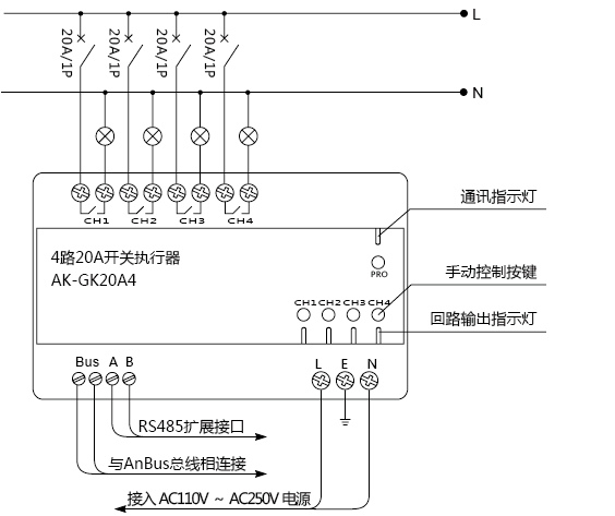 DLE410-4回路10A/路,數字式可編程前沿調光控制器