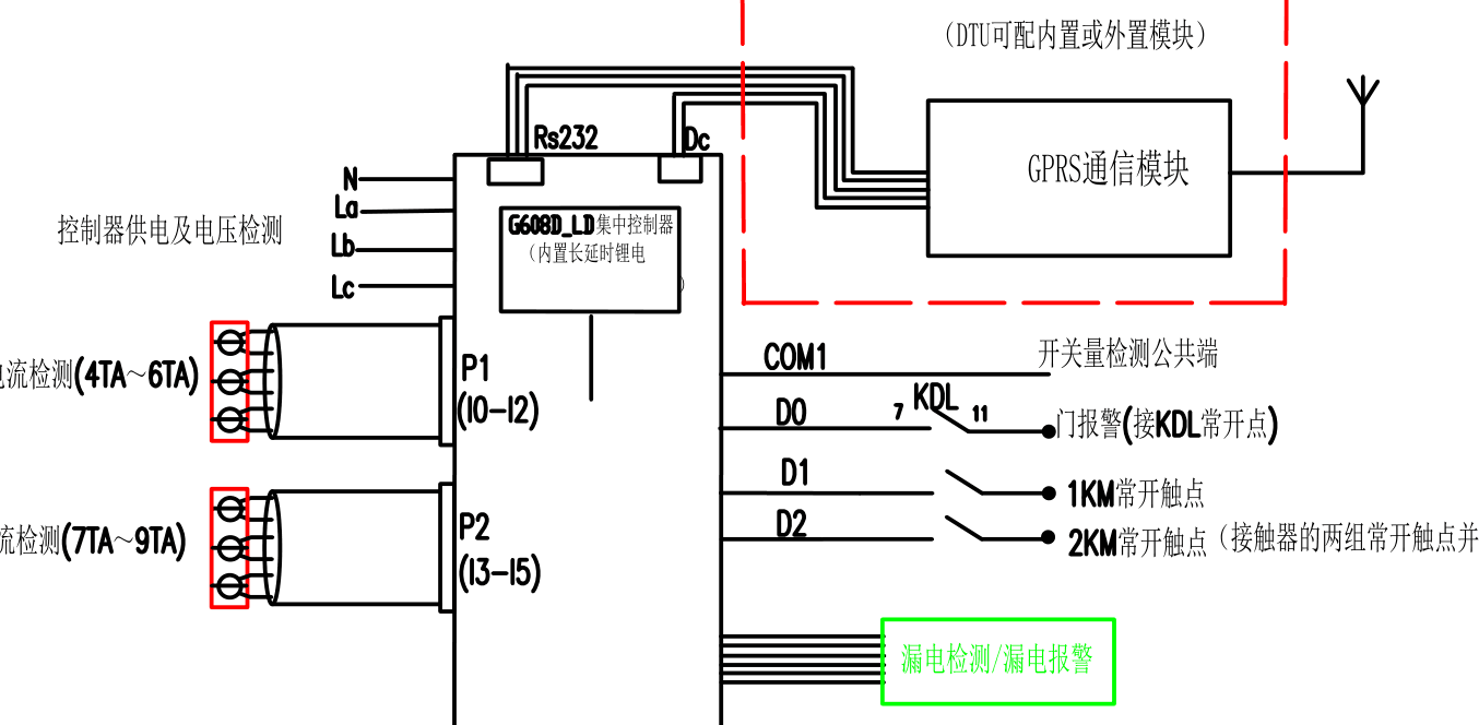 #智能控制裝置可利用RS485通訊接口連接多功能電表,對用電參數(shù)進行采集上傳。