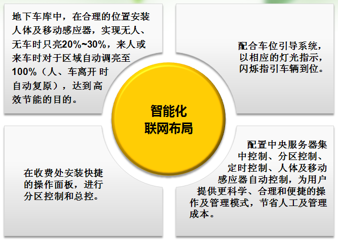 照明節(jié)能技術(shù)改造分為新建LED路燈和LED路燈改造項目,同時引入智能管理系統(tǒng),根據(jù)功能需要選擇合適的方案。