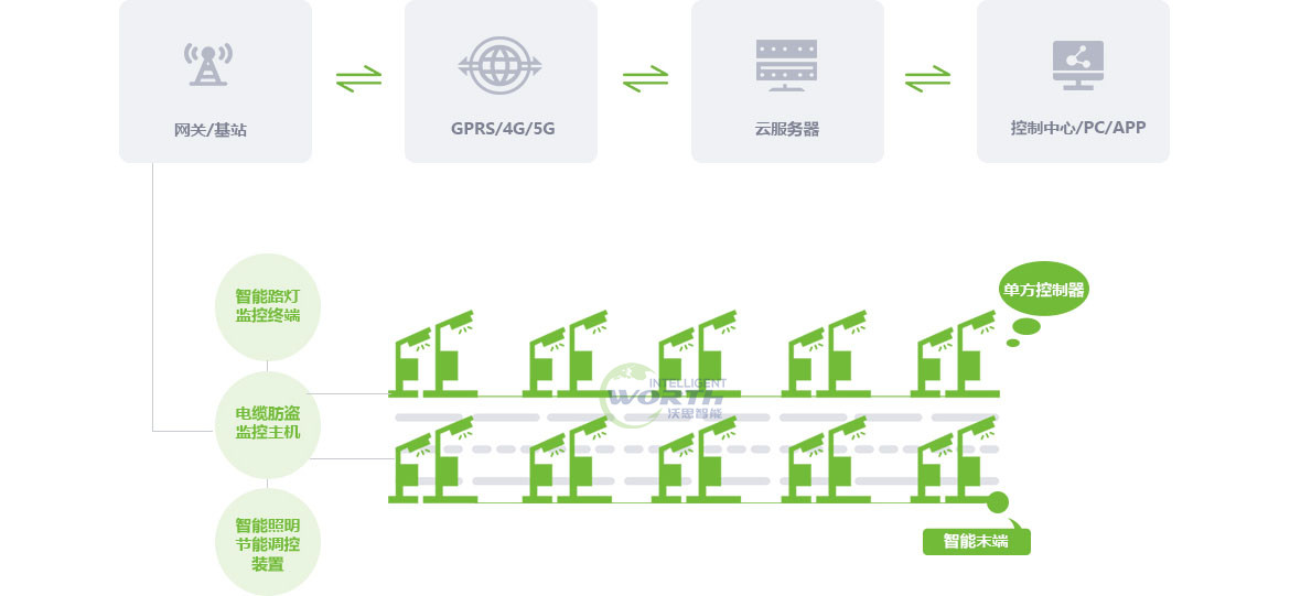 終端級系統:直接控制單燈照明,實現單燈開關、調光及故障檢測(如光源損壞、線路異常)。