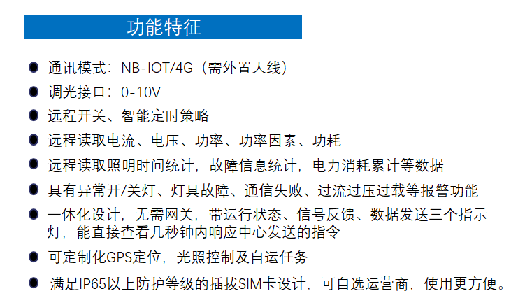 NB-IOT 無線單燈控制器是智慧城市控制系統(tǒng)中的一個(gè)重要組成部分,內(nèi)置NB-IOT無線通訊模組,該通訊方式具備高頻段、低功耗、超高靈敏度,結(jié)合專業(yè)的硬件和軟件設(shè)計(jì),無需集中控制器,每盞單燈控制器內(nèi)置物聯(lián)網(wǎng)卡,單燈控制器可單獨(dú)接收和輸出數(shù)據(jù)至云平臺(tái)或固定IP地址,與客戶端遠(yuǎn)程交替數(shù)據(jù),實(shí)效性和穩(wěn)定性更高。該產(chǎn)品具有功能強(qiáng)大,體積小,易實(shí)施,免布線,工作可靠,易于維護(hù)等優(yōu)點(diǎn)。