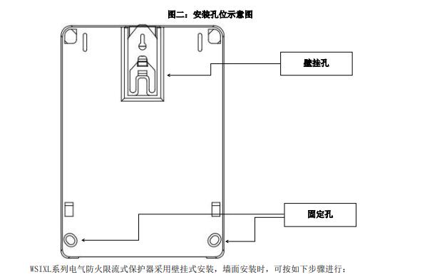 步驟B.將保護器的掛孔對齊并掛在已固定在墻體上的M4螺釘,再將保護器的接線端子保護蓋翻開,用